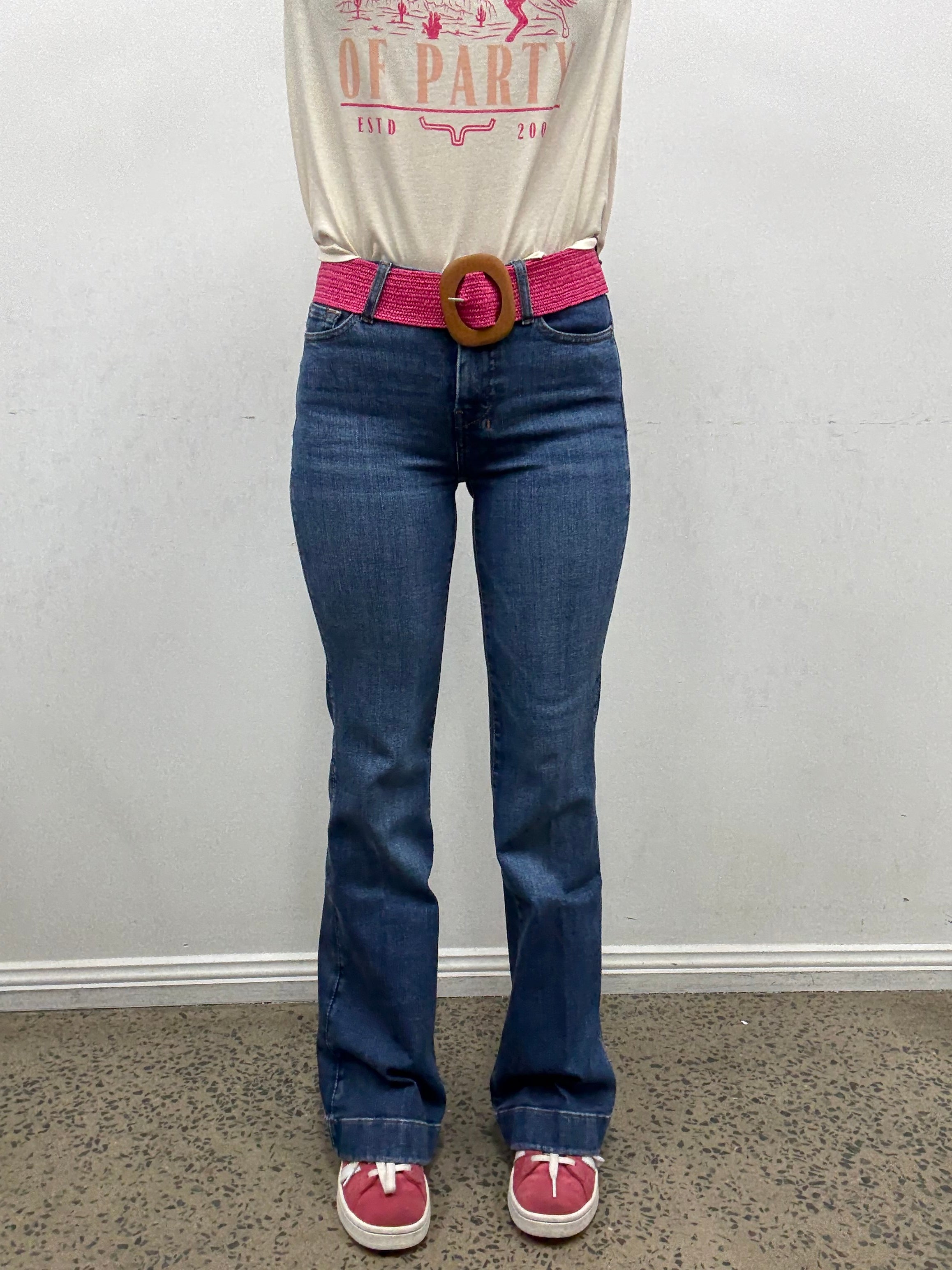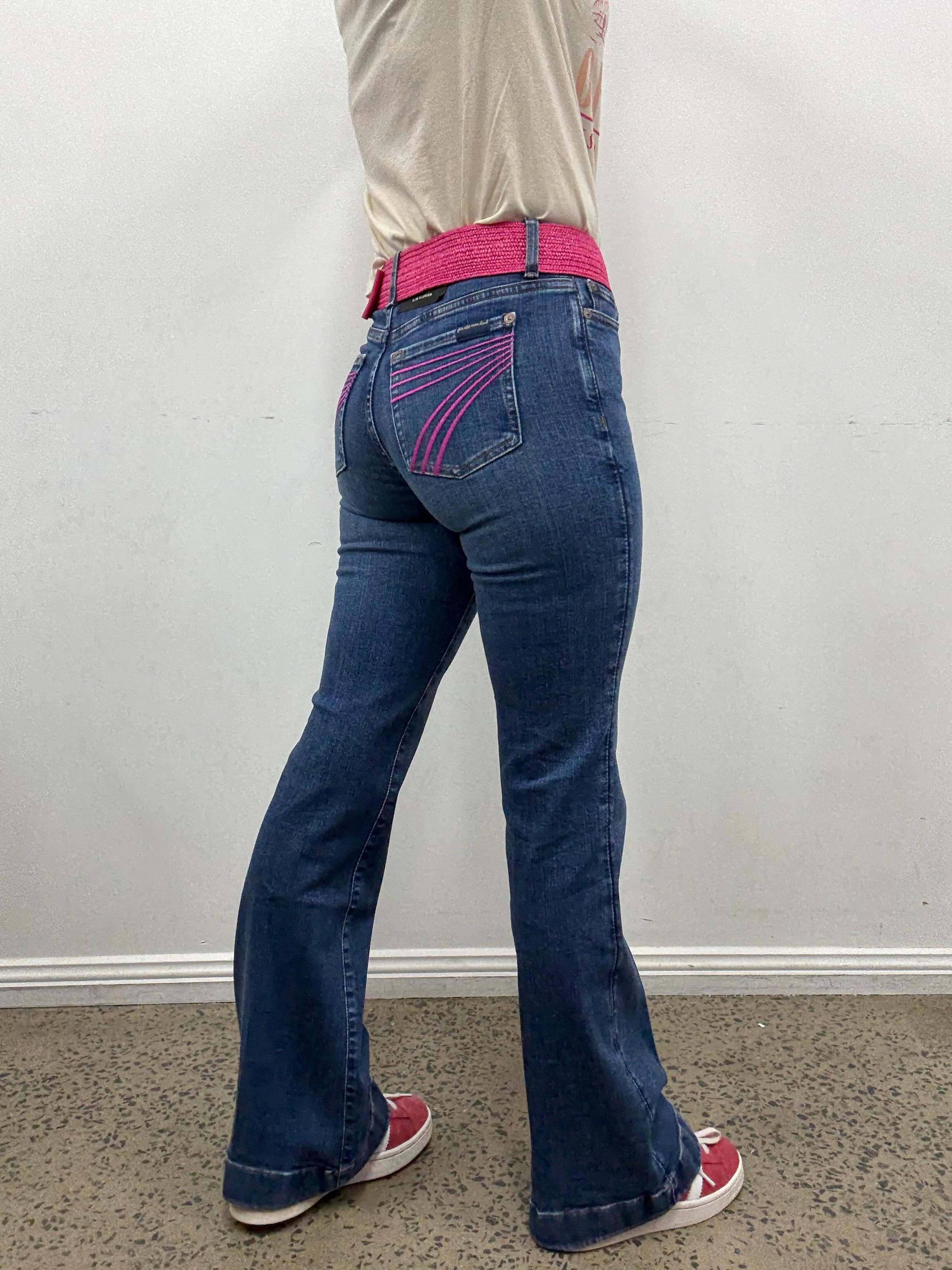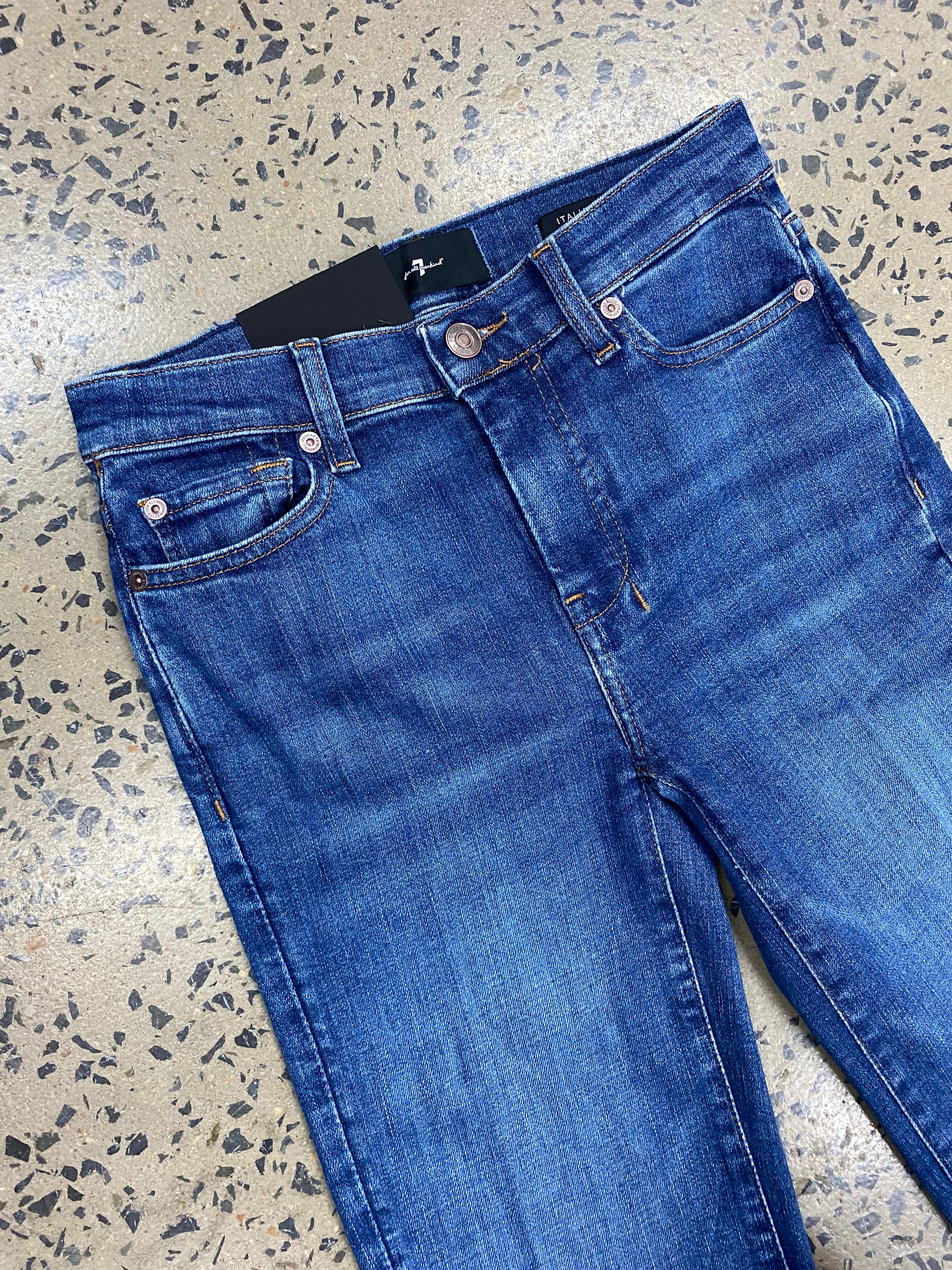 The iconic 7 For All Mankind jean, in a must-have wide leg trouser silhouette - The Dojo. Featuring a mid rise and a subtly wider flare alongside the signature navy blue embroidered 7 pockets. This medium blue wash is a timeless wardrobe staple that you'll be loving for years to come.