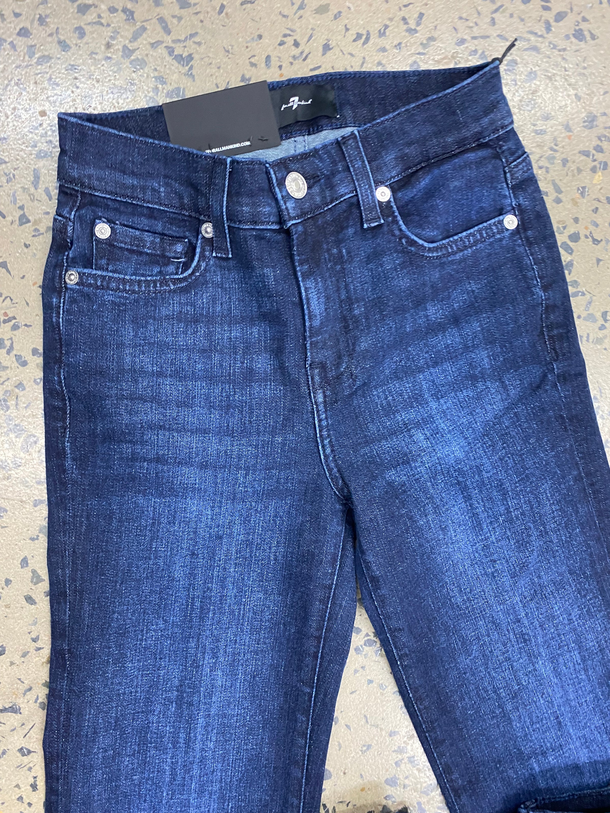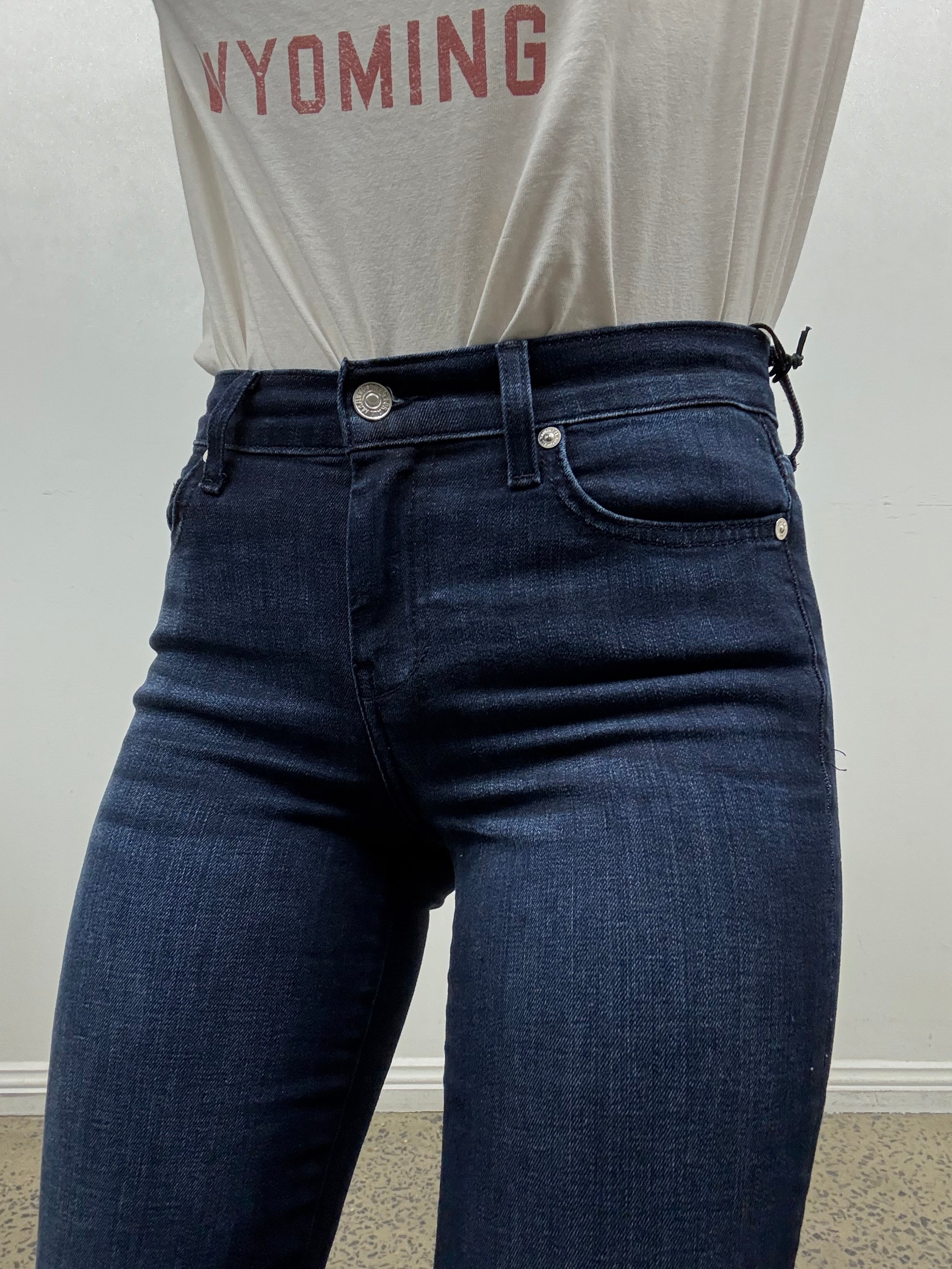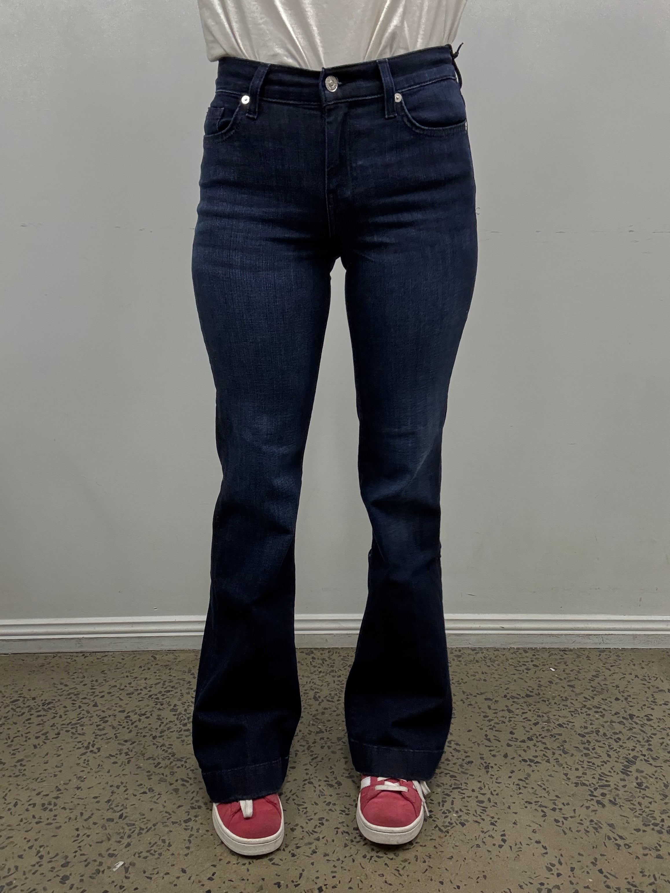 The iconic 7 For All Mankind jean, in a must-have wide leg trouser silhouette - The Dojo. Featuring a mid rise and a subtly wider flare alongside the signature red embroidered 7 pockets. This dark blue wash is a timeless wardrobe staple that you'll be loving for years to come.