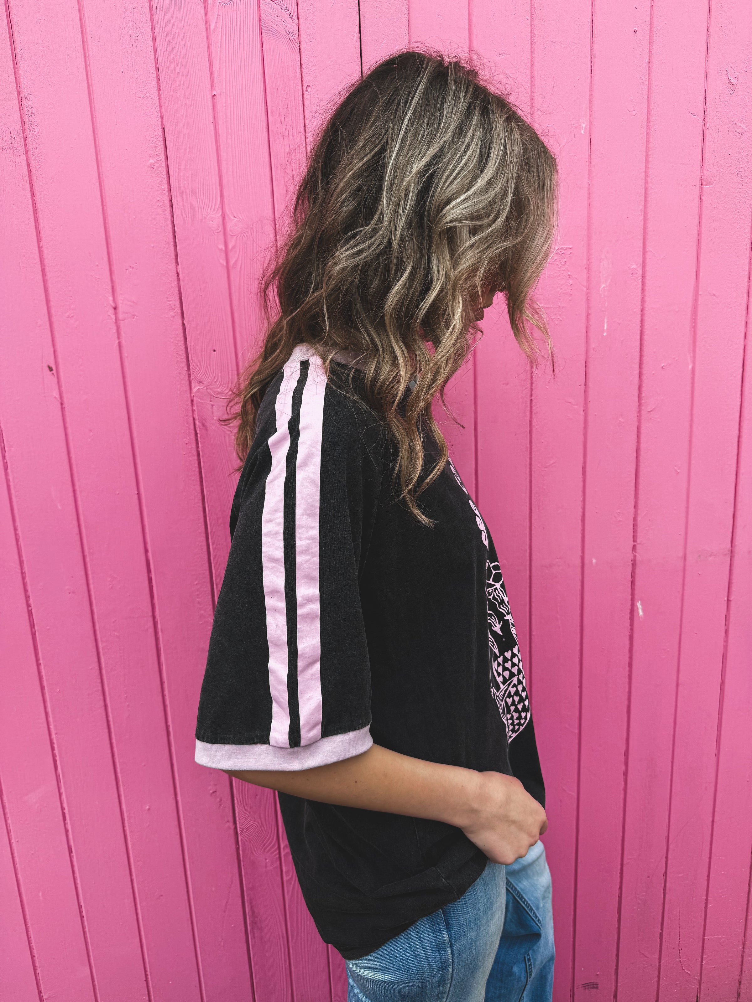 Coastal Cowboy Oversized Tee - Charcoal & Pink