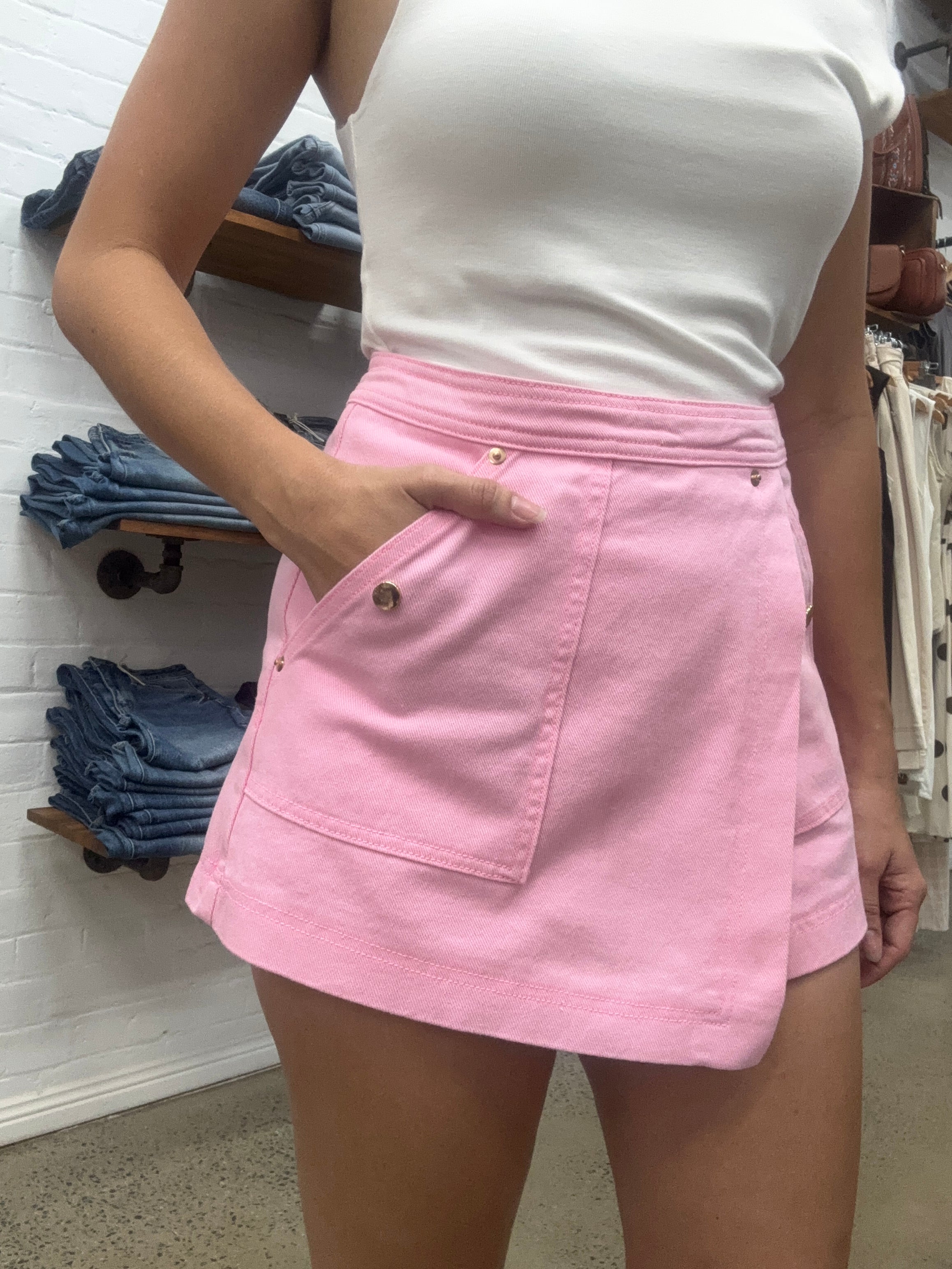Ivy is a flary high waisted skort that has a one zip closure at the back. Four pockets, two at the front and two at the back. Made From: 100% Cotton.