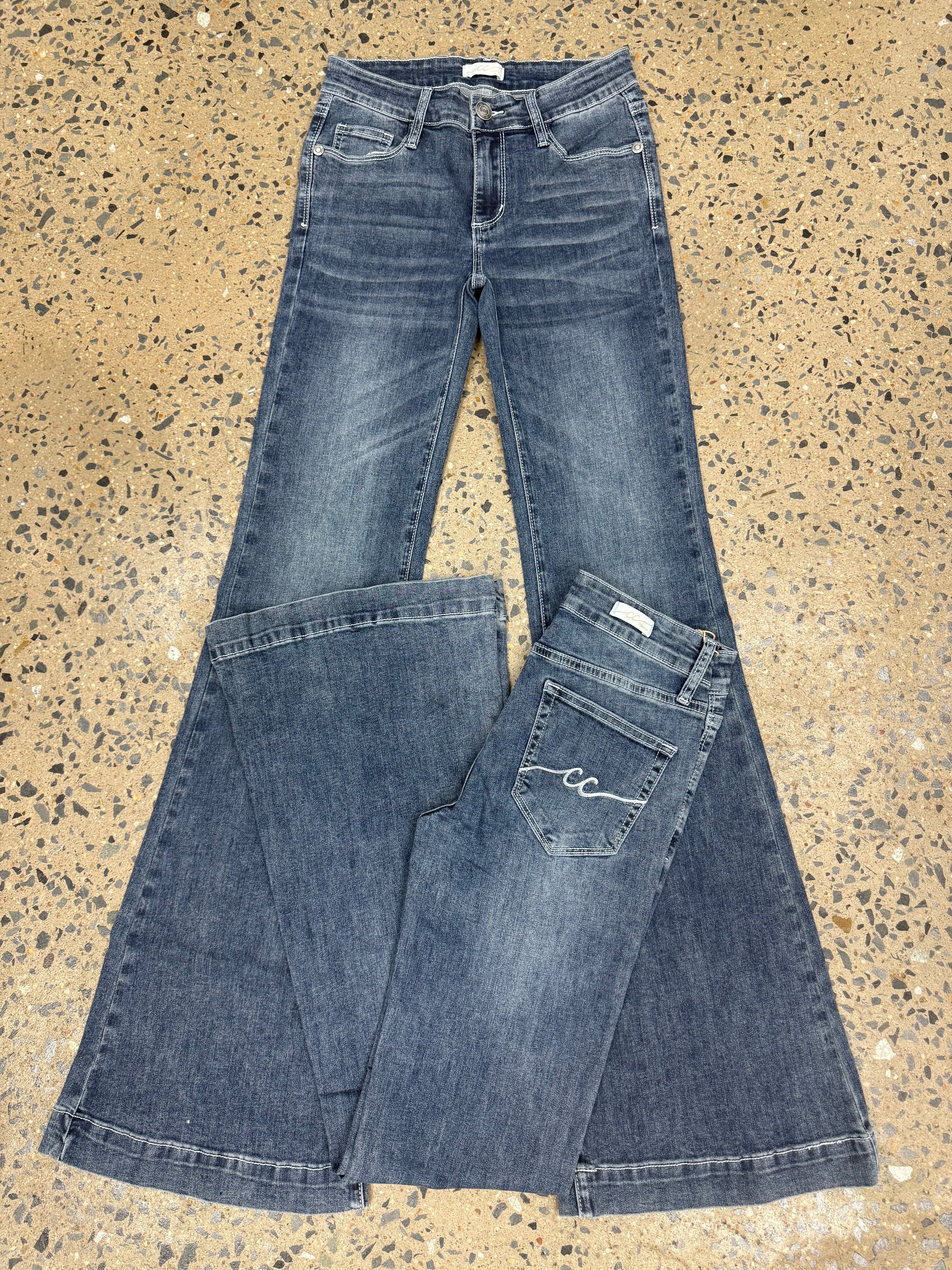 The CC Western Carissa Classic Mid Wash Trouser is a mid-high rise trouser that features a wide cuff hem and CC detailing on the pockets.