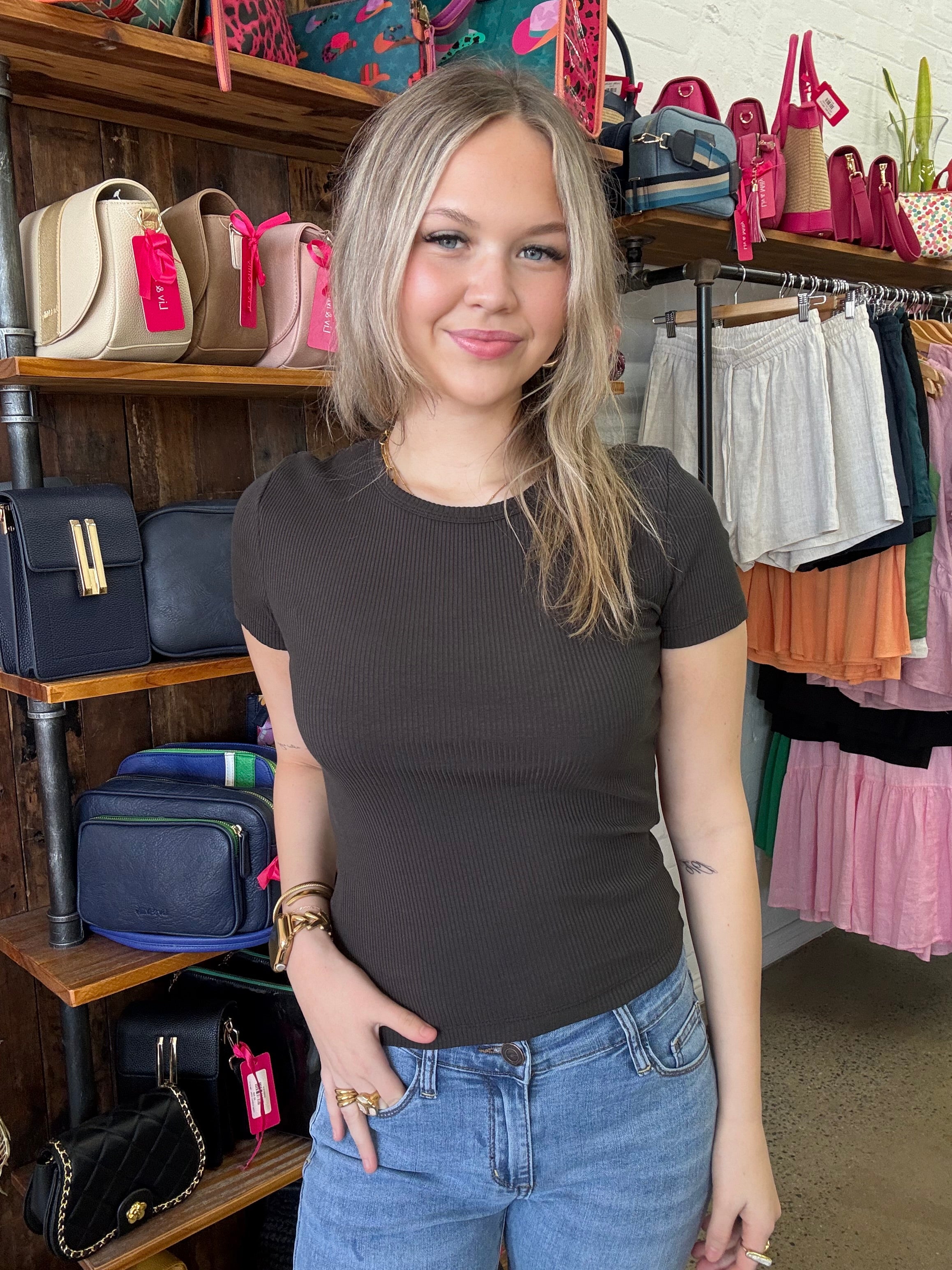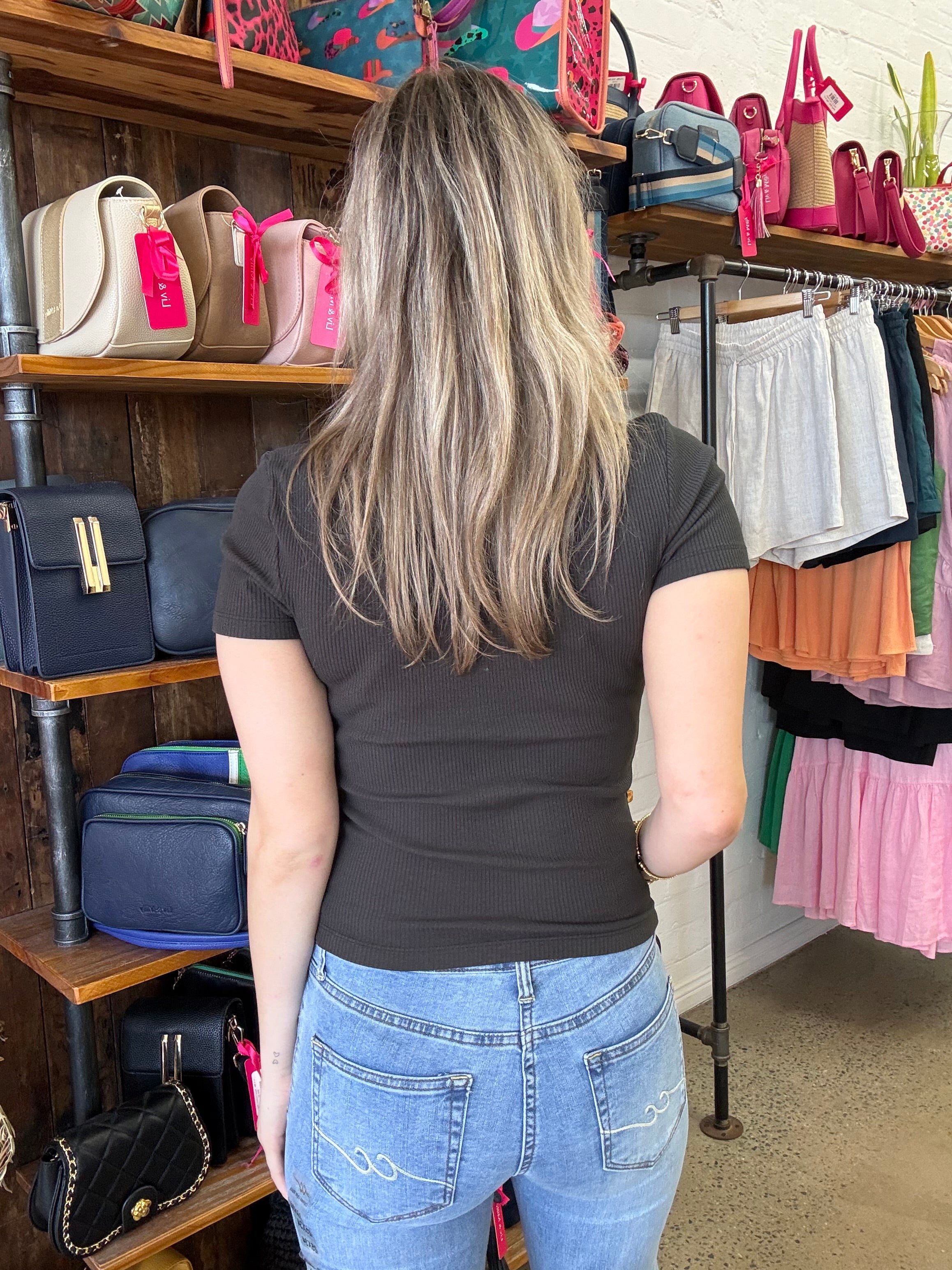 The Eve tees are a timeless staple that you'll reach for on repeat. It features a higher, fitted neckline and short cap sleeves - perfect for the summer. Made From: 90% Cotton, 10% Elastane.