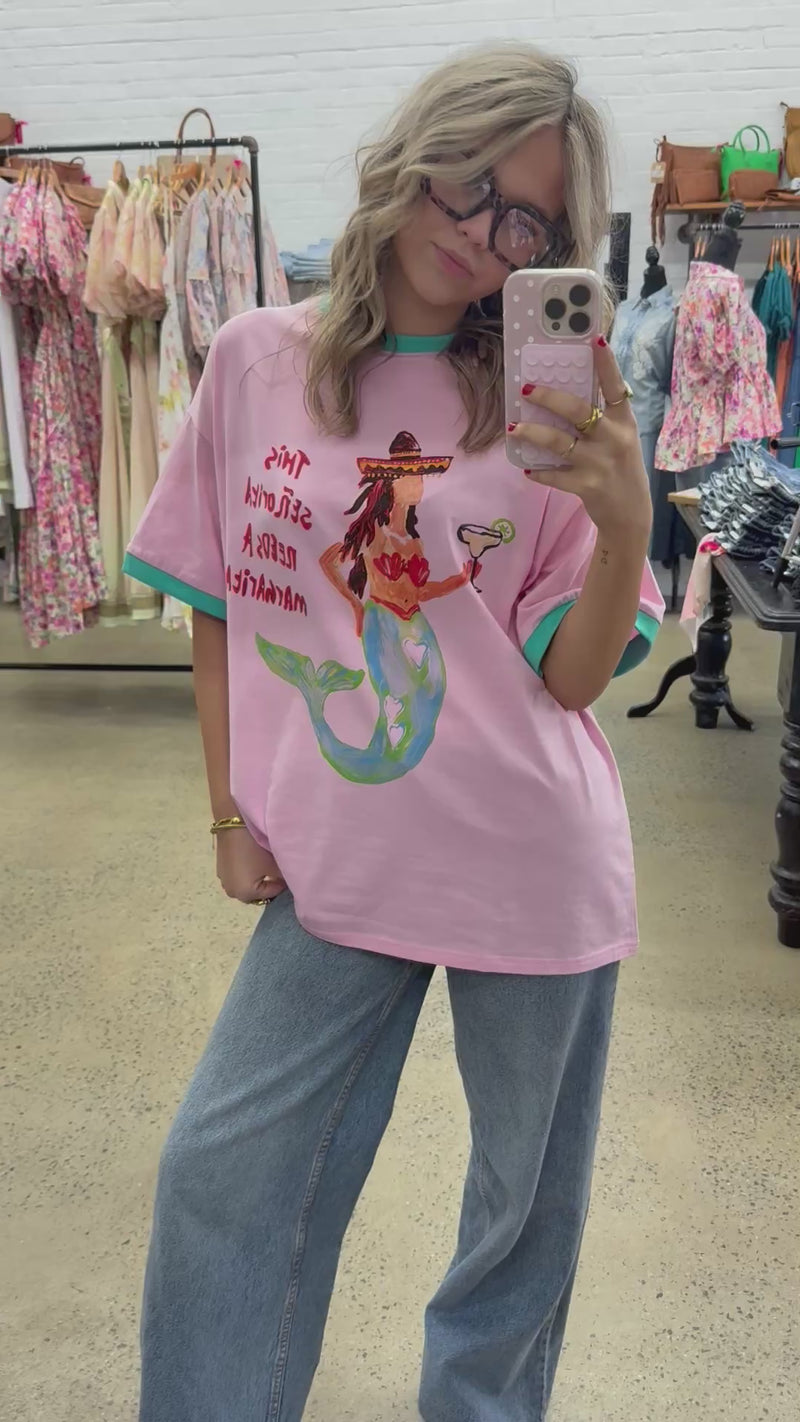 Senorita Margarita Tee features an oversized, jersey style cut and western graphic for anyone who loves vintage style with a playful twist. The perfect tee to wear dressed up or down, style it with vintage denim or a maxi skirt. 100% Cotton