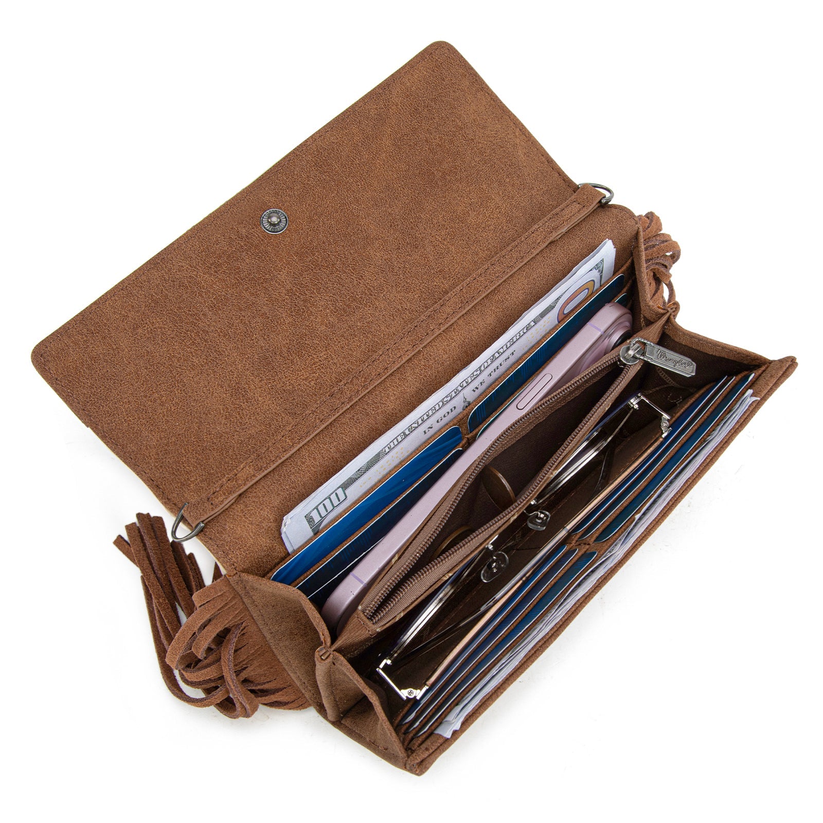 Wrangler Aztec Embroidered Fringe Wallet/Crossbody - Brown (WG233-W018BR)