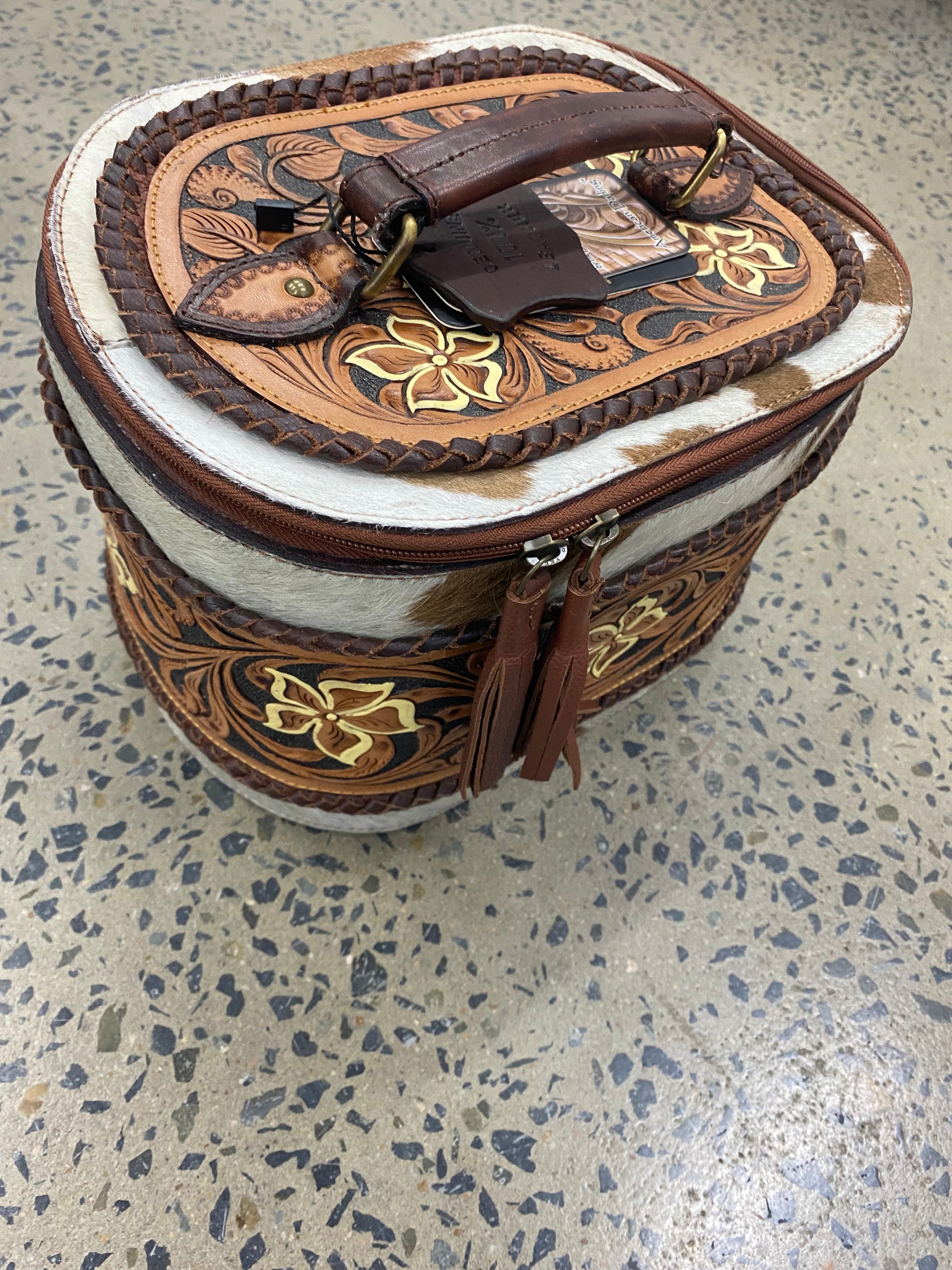 High quality genuine leather Jewellery Box with carved leather and cowhide.