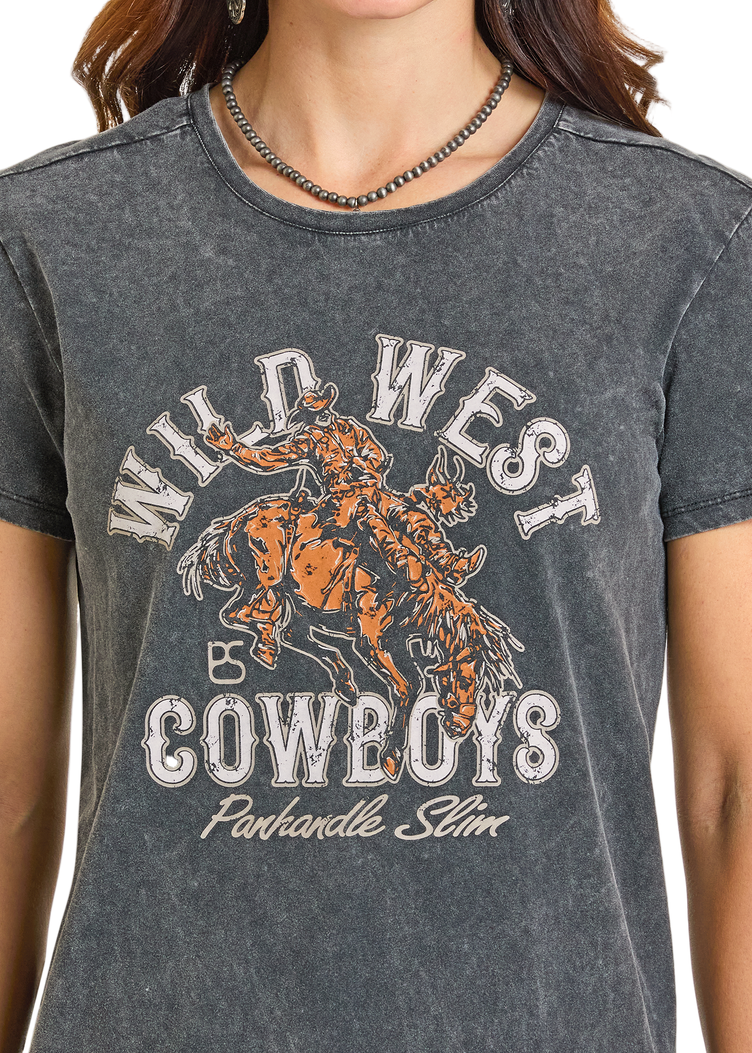 Rock and Roll women's printed oversized tee with a 'Wild West Cowboys' graphic design across the front. 100% Cotton
