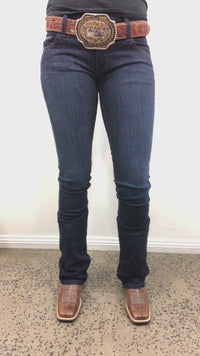 Kimes Ranch Audrey is a premium quality performance mid rise jean with a slim bootcut. Audrey will sit on the point of your hip at the front. The waist band vee's at the front and sits a little higher at the back. The bootcut on this style is slim like the Kimes Ranch Betty.