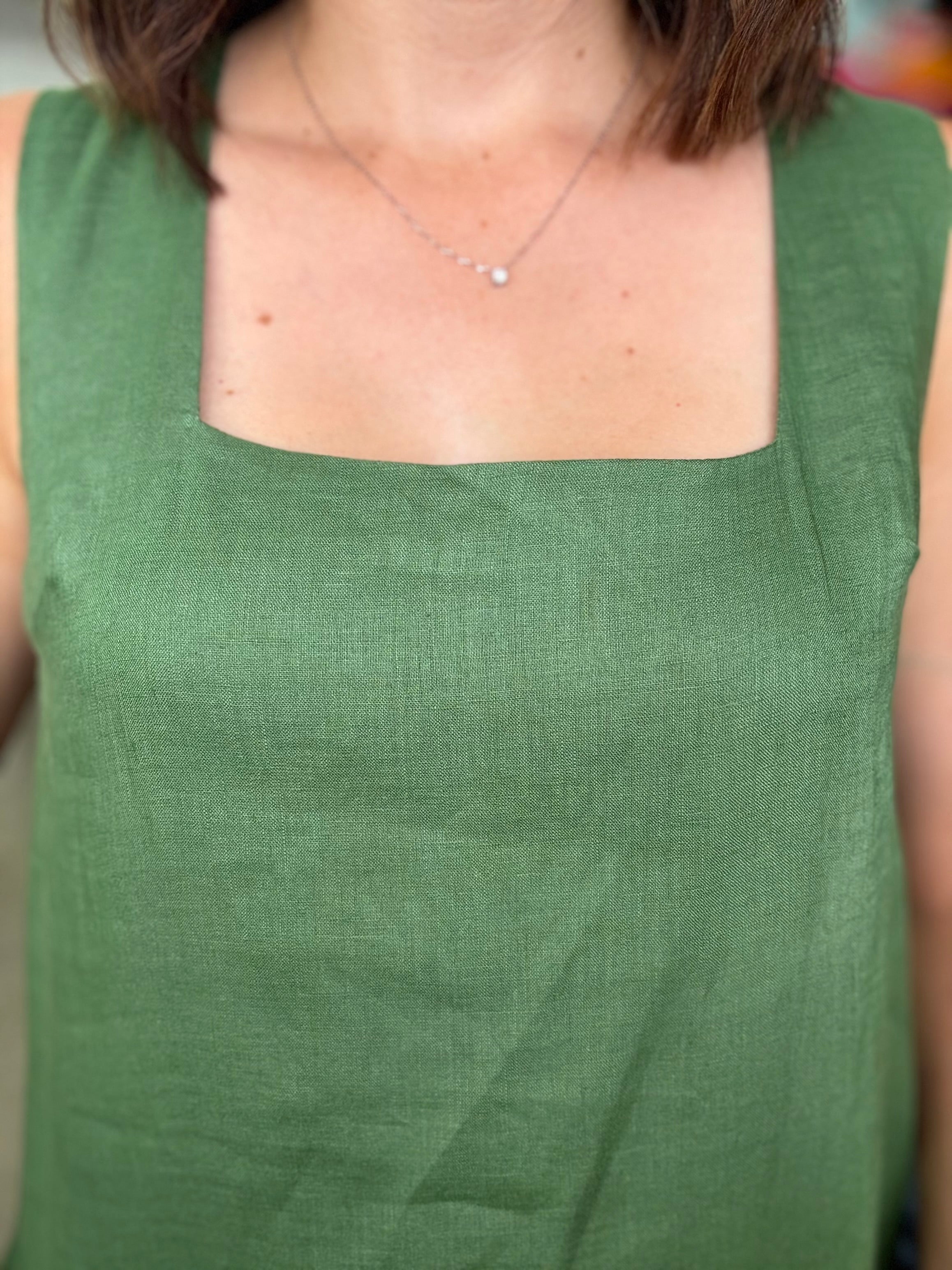 Marie is a thick strapped, squared neckline top with two tie up straps at the back. 100% Linen.