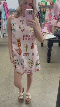 This Southwestern Wild Ones dress combines rustic charm with modern flair. Featuring an intricate print, a flattering silhouette and a touch of playful desert spirit. Whether you're running errands or stepping out on the town, this dress brings a touch of southwestern to life with every step. 100% Cotton