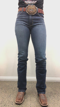 Kimes Ranch Sarah is a premium quality super high rise jean with a standard bootcut. Sarah will cover your belly button. The rise on this style is the highest in the Kimes Ranch range.